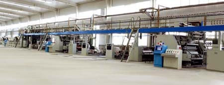 The corrugated paperboard production line is made up of roll paper through tile roll pressing, gluing, bonding, drying, forming, separating paper, pressing line, cutting into the specification board, and finally stacking and outputting. Yantai Runde trade limited company production of high, medium and low grades three, five, seven corrugated board production line, the production rate of 60-200m/min, web 1400-2500mm, A, B type, C, E, BC, F etc., by the user to choose. The machines for corrugated line include three parts: Main machines: mill roll stand, single facer, over bridge, glue machine, double facer, slitter scorer, cut off, stacker and so on. Auxiliary machines: trolley and track, main drive, pre-heater, glue making machine and glue system, steam or oil heating system, compressed air system, electrical control system and so on. Optional machines: splicer, rotary shear, scrap shredder, production control system and so on. Our company can provide top grade, medium grade and common grade corrugated line to meet different requirements. The speeding can reach 60-200m/min and the width is from 1400mm to 2500mm. |
